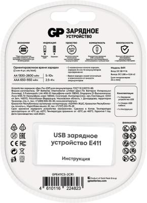 ОписаниеУниверсальное зарядное устройство GP Е411CS-2CR1 на 4 слота способно заряжать одновременно 4 аккумулятора и работать с двумя форматами батарей – «пальцами» (AA) и «мизинцами» (AAA). Таким образом ваша техника, и гаджеты никогда не останутся без энергии. Время заряда: АА -5-10 ч., ААА - 2,5-4 ч.