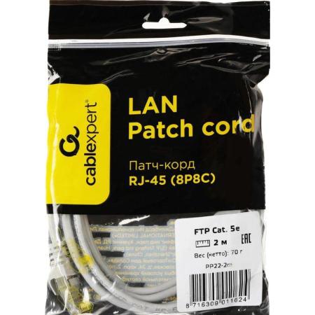 Патч-корд PREMIER PP22-2m литой (molded), FTP, cat.5E, 2м, 4 пары, 26AWG, алюминий омедненный, серый