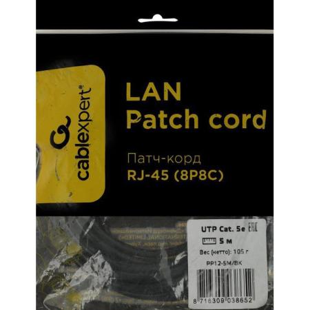 Патч-корд PREMIER PP12-5M/BK литой (molded), UTP, cat.5E, 5м, 4 пары, 26AWG, алюминий омедненный, черный