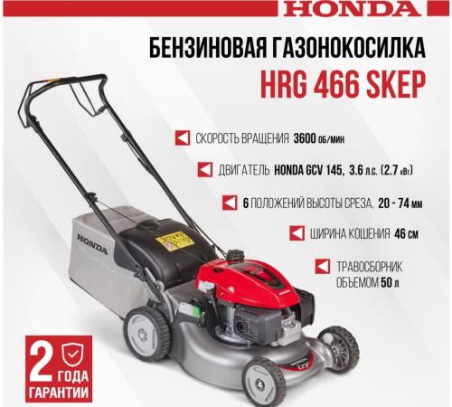 Прочие особенности и свойстваБензиновая газонокосилка HONDA HRG466C1SKEP служит для ухода за газонами средней площади. Рекомендованный размер участка - более 12 соток.