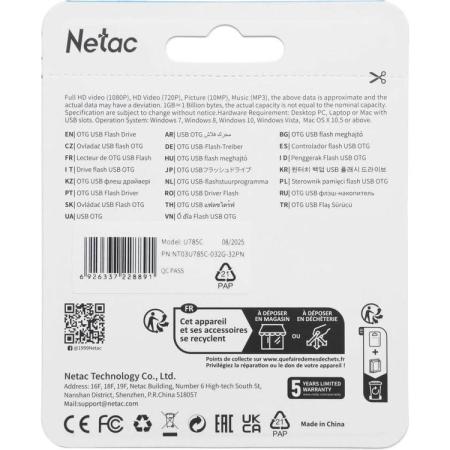 Флешка USB NETAC U785C 32ГБ, USB3.2, серый [nt03u785c-032g-32pn]