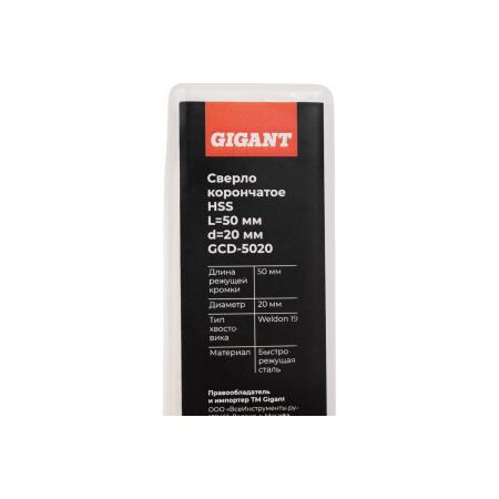 Gigant Сверло корончатое HSS, L=50 мм, d=20 мм GCD-5020