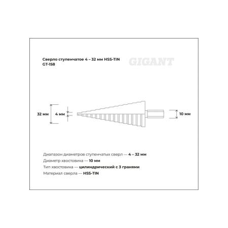 Gigant Сверло ступенчатое 4-32мм HSS-TIN GT-158