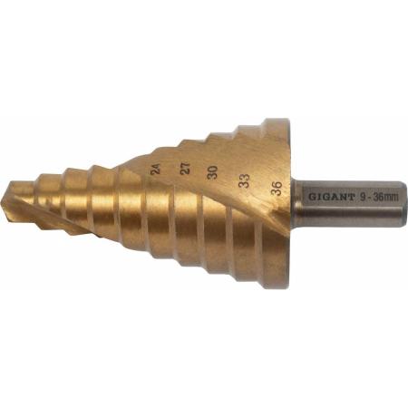 Gigant сверло ступенчатое 9-36 мм, шаг 3, HSS, спирал. проф. GSD 11057