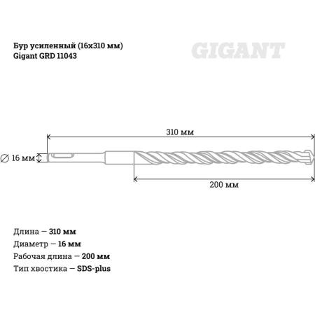 Gigant Усиленный бур SDS-plus 16x310 GRD 11043